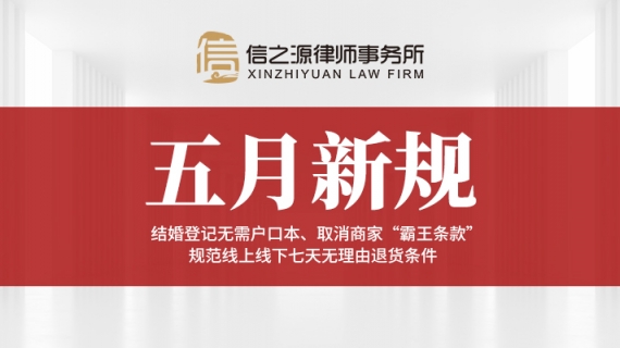 5月起一批重磅新规将密集实施关乎每个人的切身利益婚姻登记无需提供户口本商家“霸王条款”将认定为无效七天无理由退货有条件不得侵犯农村集体经济组织及其成员的合法权益民营经济促进法出台进一步优化民营经济发展环境......条条重要,事...
