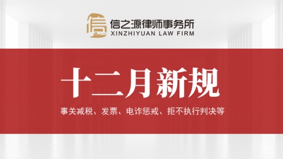 12月起一批重磅新规即将施行事关减税、发票、电诈惩戒、拒不执行判决、取消普宅和非普宅标准等条条重要,事关你我快来和信之源律师一起看看吧~↓↓↓ 全 国 新 规 《中华人民共和国关税法》施行:税收立法再进一程《中华人民共和国关税法...