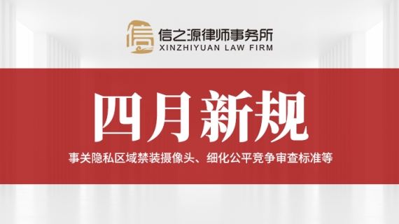 四月将至一批重磅新规按时上线禁止在民宿、宿舍等地安装图像采集设施细化公平竞争审查标准三角形标志灯被取消单位食堂和供餐单位应当配备食品安全员……条条重要,事关你我快来和信之源律师一起看看吧~↓↓↓ 全 国 新 规 禁止在这些区域...