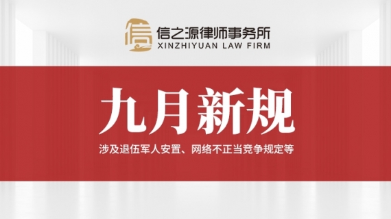9月起又有一批新的政策法规开始实施涉及退役军人安置、网络不正当竞争、国企管理人员处分条例·····快来和信之源律师们一起了解吧~↓↓↓ 全 国 新 规 《中华人民共和国保守国家秘密法实施条例》施行:增加党管保密专门条款修订后的《...