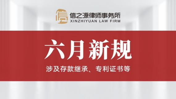 夏季悄然而至,6月起又有一批新的政策法规开始实施,涉及存款继承、专利证书、电动车等,快和信之源律师事务所的律师们一起看看具体都有哪些吧