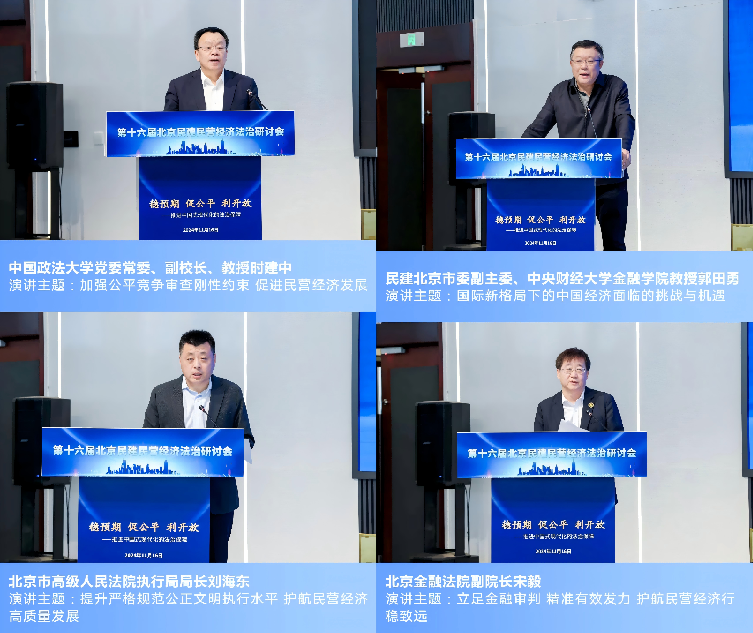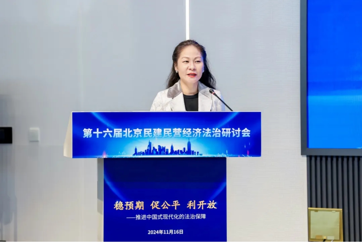11月16日,由民建北京市委主办,民建北京市委法制委员会承办的“第十六届北京民建民营经济法治研讨会”在北京市西城区新动力金融科技中心成功举办。本次研讨会以“稳预期·促公平·利开放——推进中国式现代化的法治保障”为主题,聚焦促进民营经济高质量发展、法治营商环境优化等社会热点问题展开深入的交流与探讨。民建中央副主席、北京市委主委司马红,民建北京市委副主委苏宏、郭田勇、苏健,中共北京市委统战部党派处处长刘润堂以及学界、政法界、企业界等嘉宾出席会议。