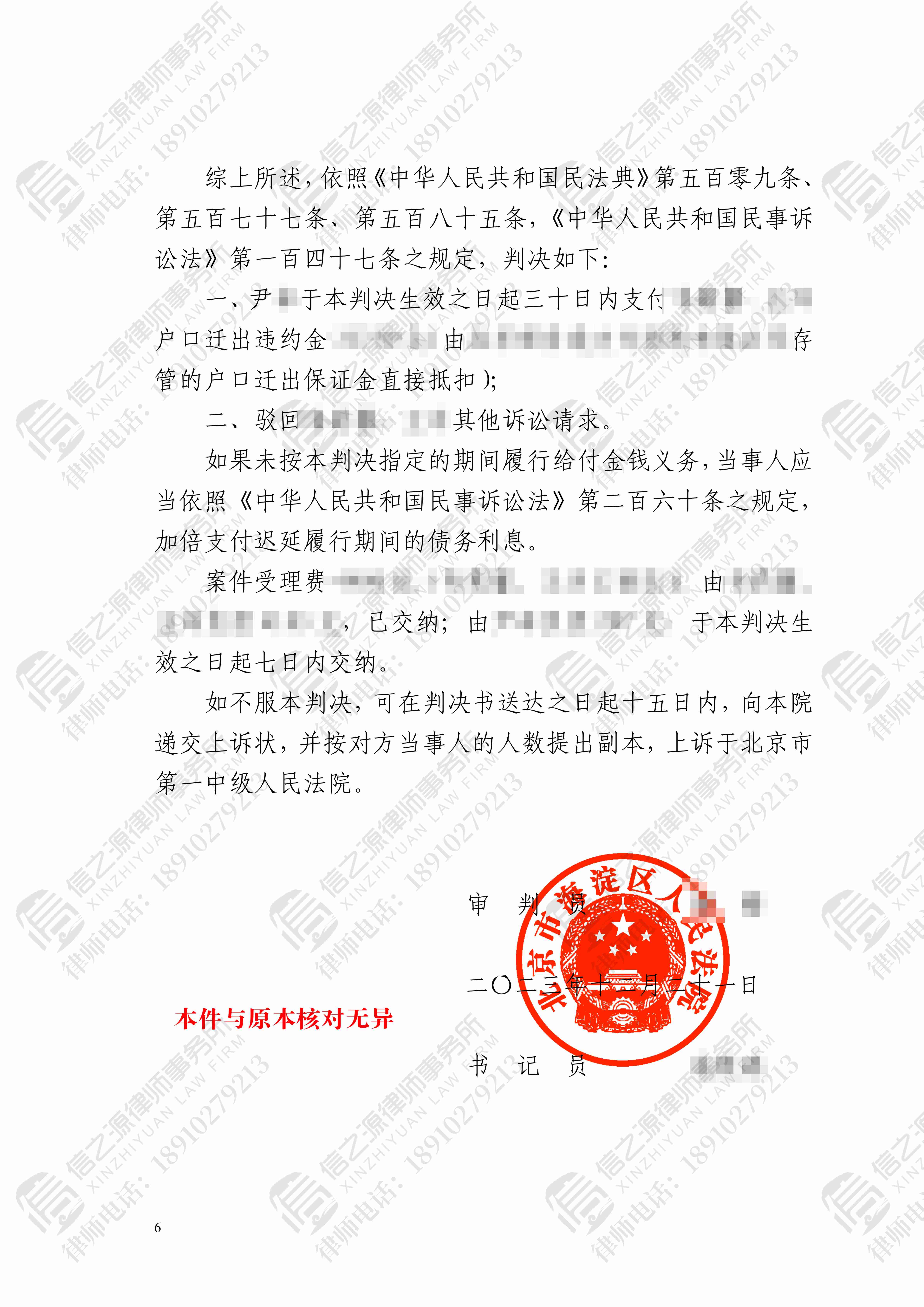 法院最终判决被告江某支付原告刘某户口迁出违约金3万余元,驳回刘某其他诉讼请求。案件结束后,江某对陈律师的专业水平极其肯定,向陈振霞律师表示感谢。