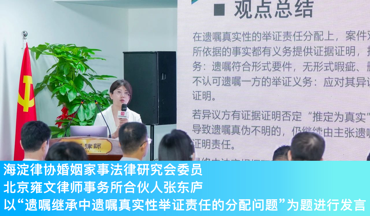 近日,由北京市海淀区律师协会、朝阳区律师协会、东城区律师协会、丰台区律师协会联合举办的家事案件中继承纠纷法律实务研讨会在海淀区时代网络大厦举办。来自一线的法官、教授、公证员、律师同仁共计160余人参会。
